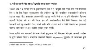 काठमाडौं — पूर्व प्रधानमन्त्री शेर बहादुर देउवा ले छानबिनका क्रममा कार्की आयोगसमक्ष दिएको बयानमा आफ्नो निवासमा जेनजी आन्दोलनका क्रममा जलेको भनिएको अमेरिकी डलर र नेपाली नोट वास्तविक नभई ‘एआईबाट तयार गरिएको सामग्री’ हुन सक्ने दाबी गरेका छन्।